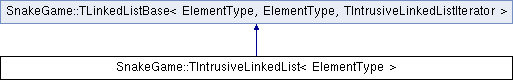 Public Types inherited from SnakeGame::TLinkedListBase< ElementType, ElementType, TIntrusiveLinkedListIterator > | |